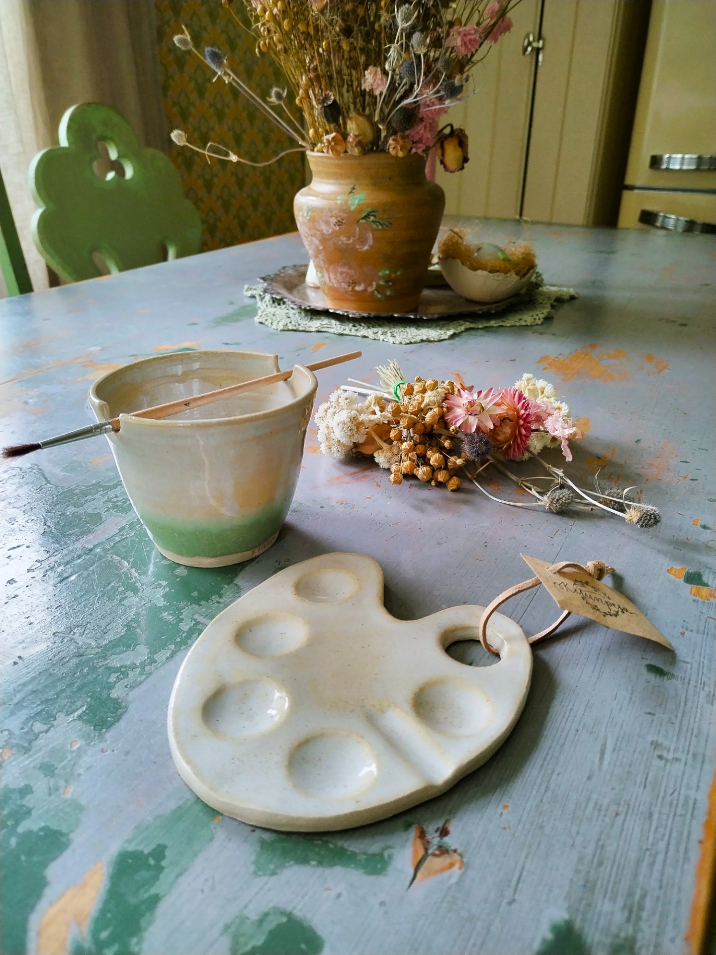 Helmikuun keramiikkavinkki on iki-ihana vesiväripaletti. Tämä on todella helppo ja nopea tehdä, vaikkapa kotipöydän äärellä. Näitä voi loihtia useassa koossa ja monen muotoisena. Keraaminen paletti on aivan ihana lahja taitelijasielulle.