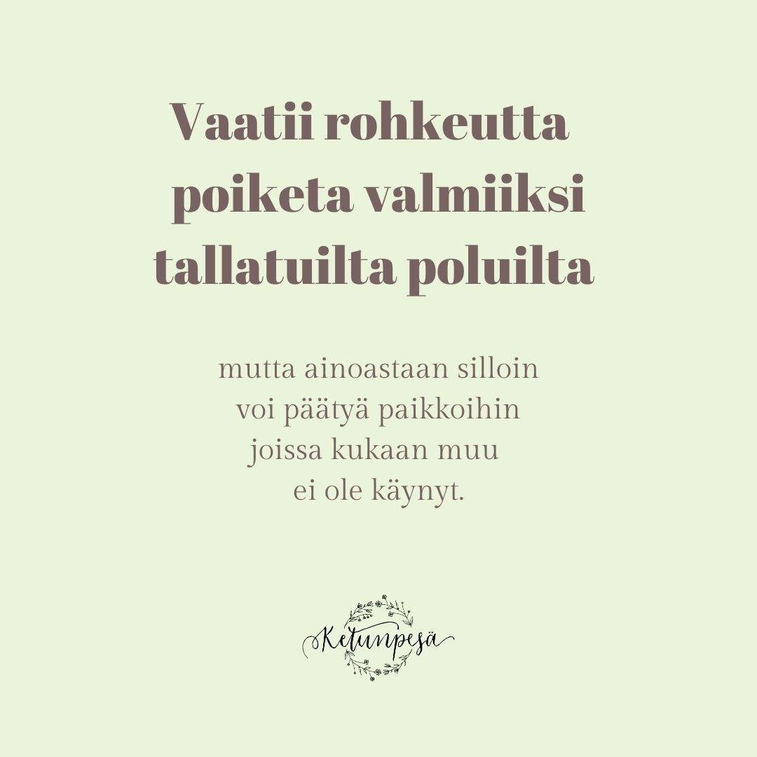 Nyt keväällä keskityn vain rakentavaan ja positiivisen palautteeseen. Niitä, sekä kannustavia viestejä, on onneksi tullut paljon enemmän kuin negatiivisia. Onnekseni myös muistan, kuinka Ketunpesää luodessani aikaa kului kolme vuotta, ennen kuin kaikki lähti sujumaan. Mikään hyvä ja kaunis ei synny kiirehtimällä.
