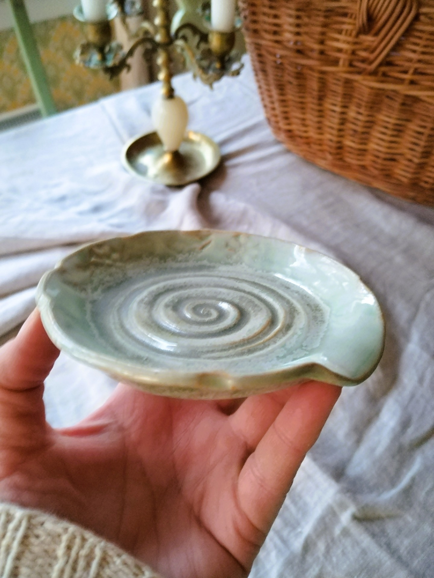 Salvian vihreä alusta kauhalla, kauhanlepuuttaja, kattilan viereen.