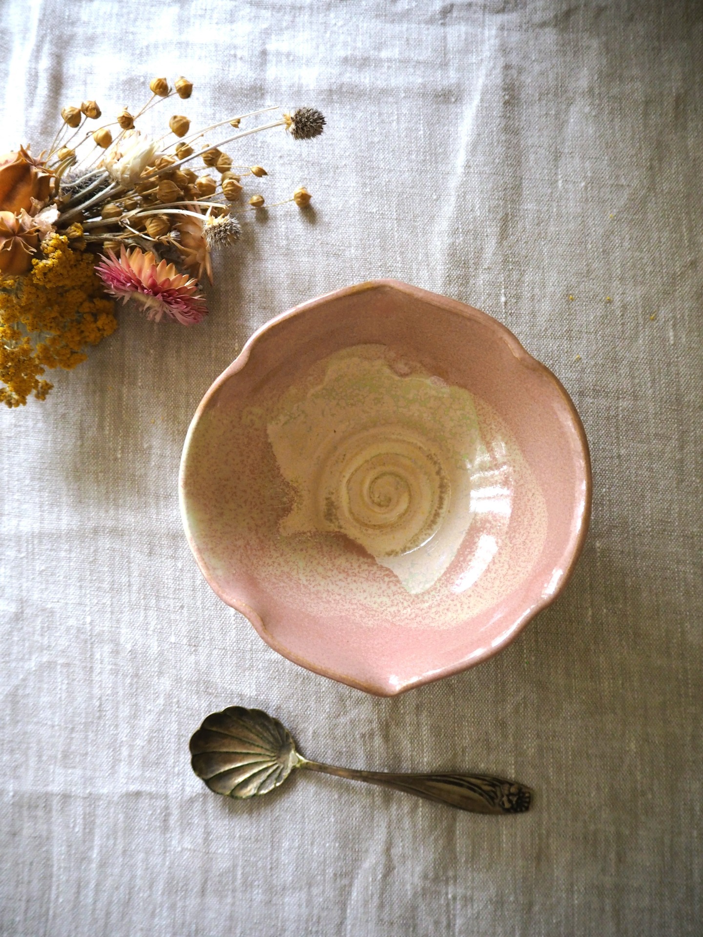 Pieni Nupulla-kulho vadelmaisen vaaleanpunaisena käy niin ruokailuun kuin vaikka korujen säilytykseen. Vadelman ja vaniljan sävyjen yhdistyessä muodostuu kauniita ja yksilöllisiä kuvioita astian pohjalle.