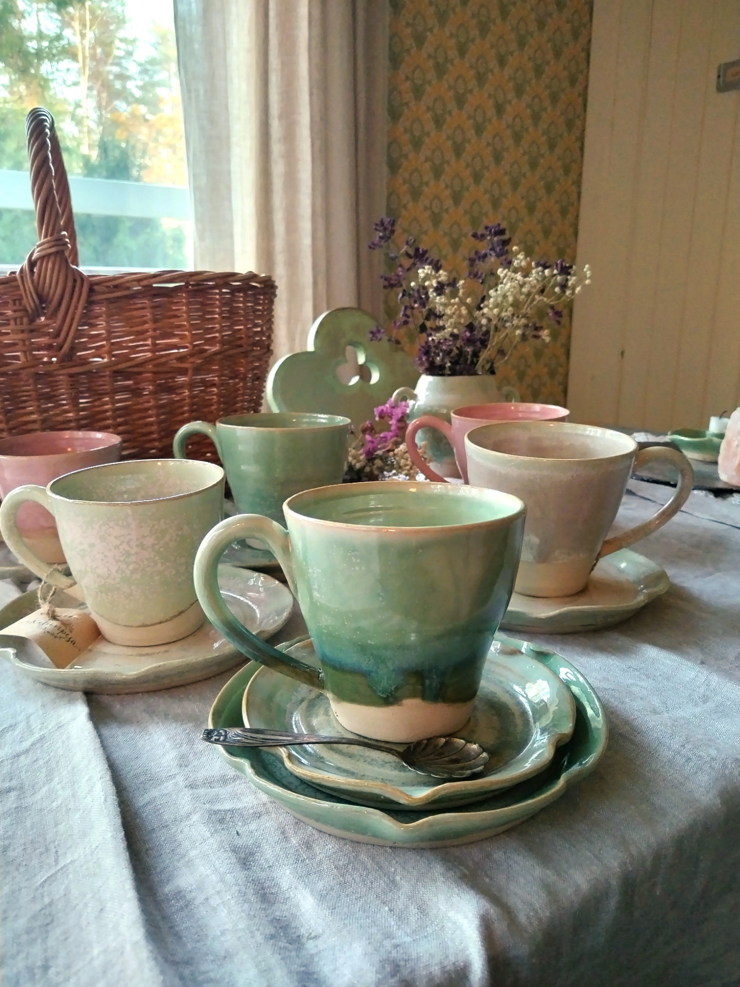 Keraamisten tuotteiden ulkomuoto ja väri vaihtelevat hieman, sillä jokainen tuote tehdään käsityönä Ketunpesän verstaalla. Tiskikoneen -ja mikron kestäviä.