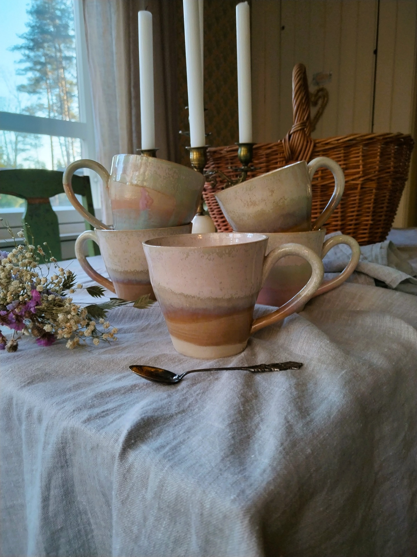 Keraamisten tuotteiden ulkomuoto ja väri vaihtelevat hieman, sillä jokainen tuote tehdään käsityönä Ketunpesän verstaalla. Tiskikoneen -ja mikron kestäviä.