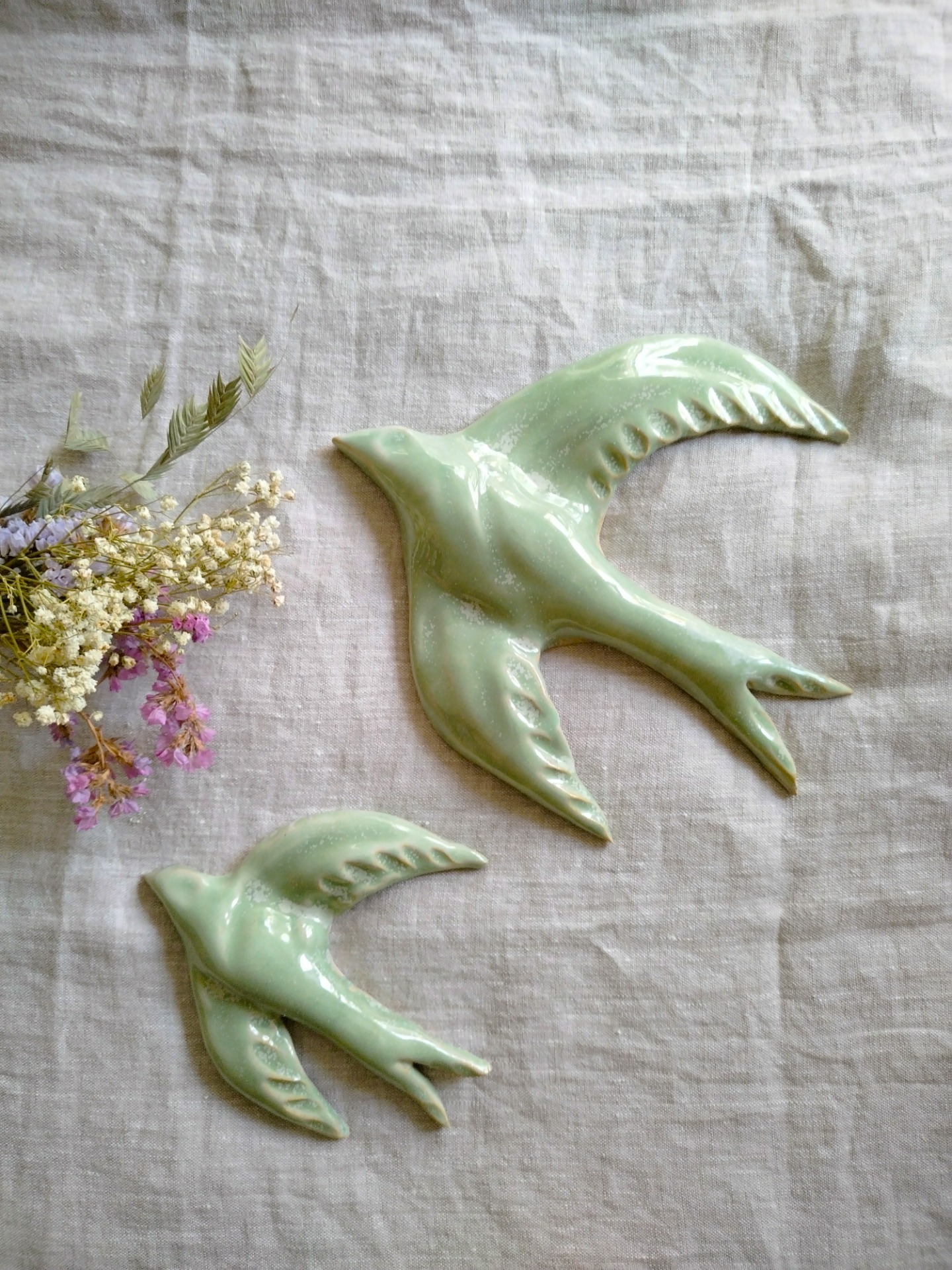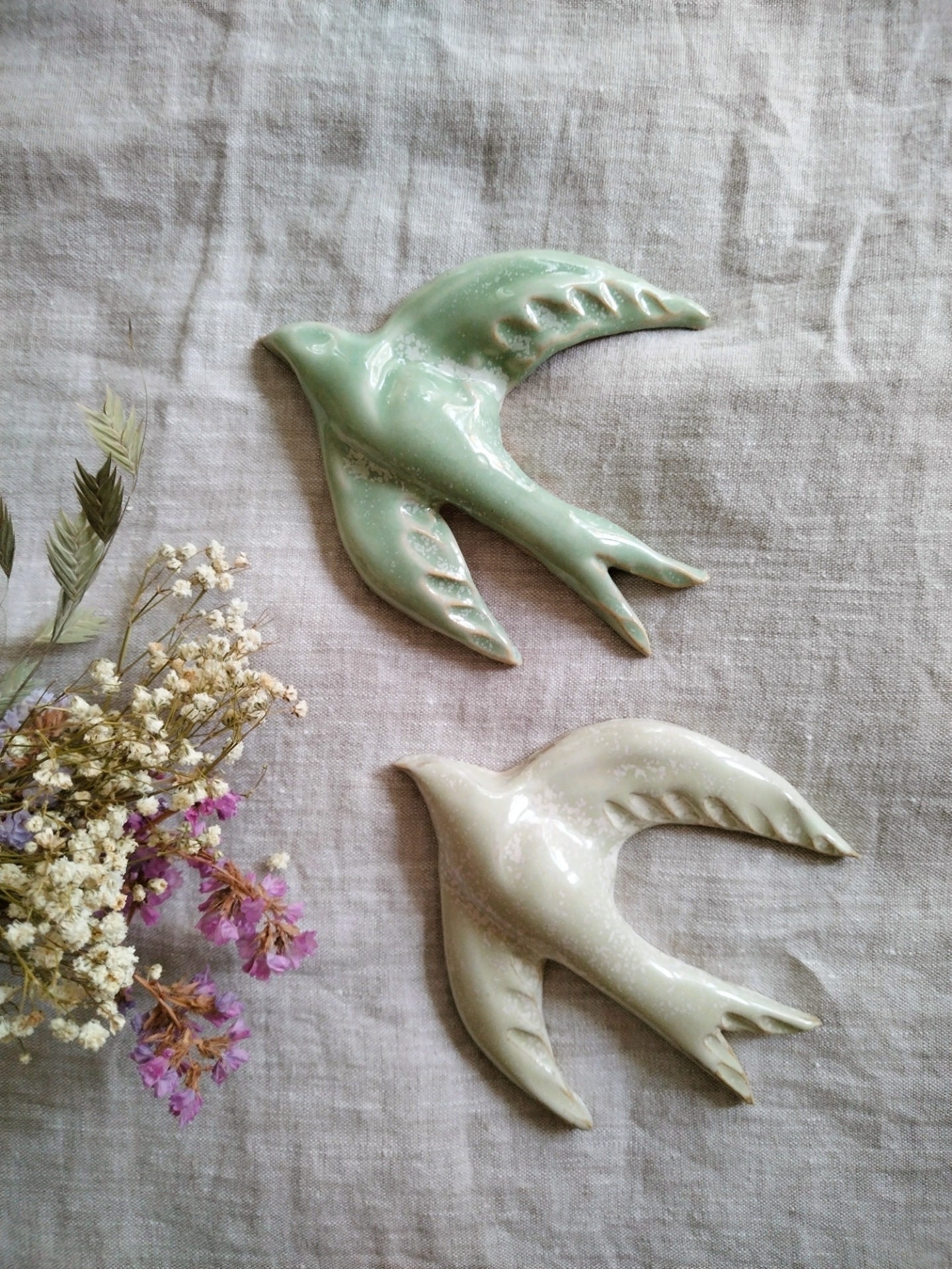 Pääskysen takana on pieni kolo, josta sen saa seinälle.