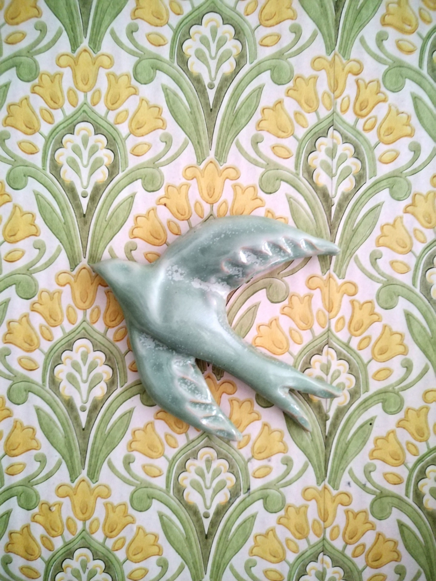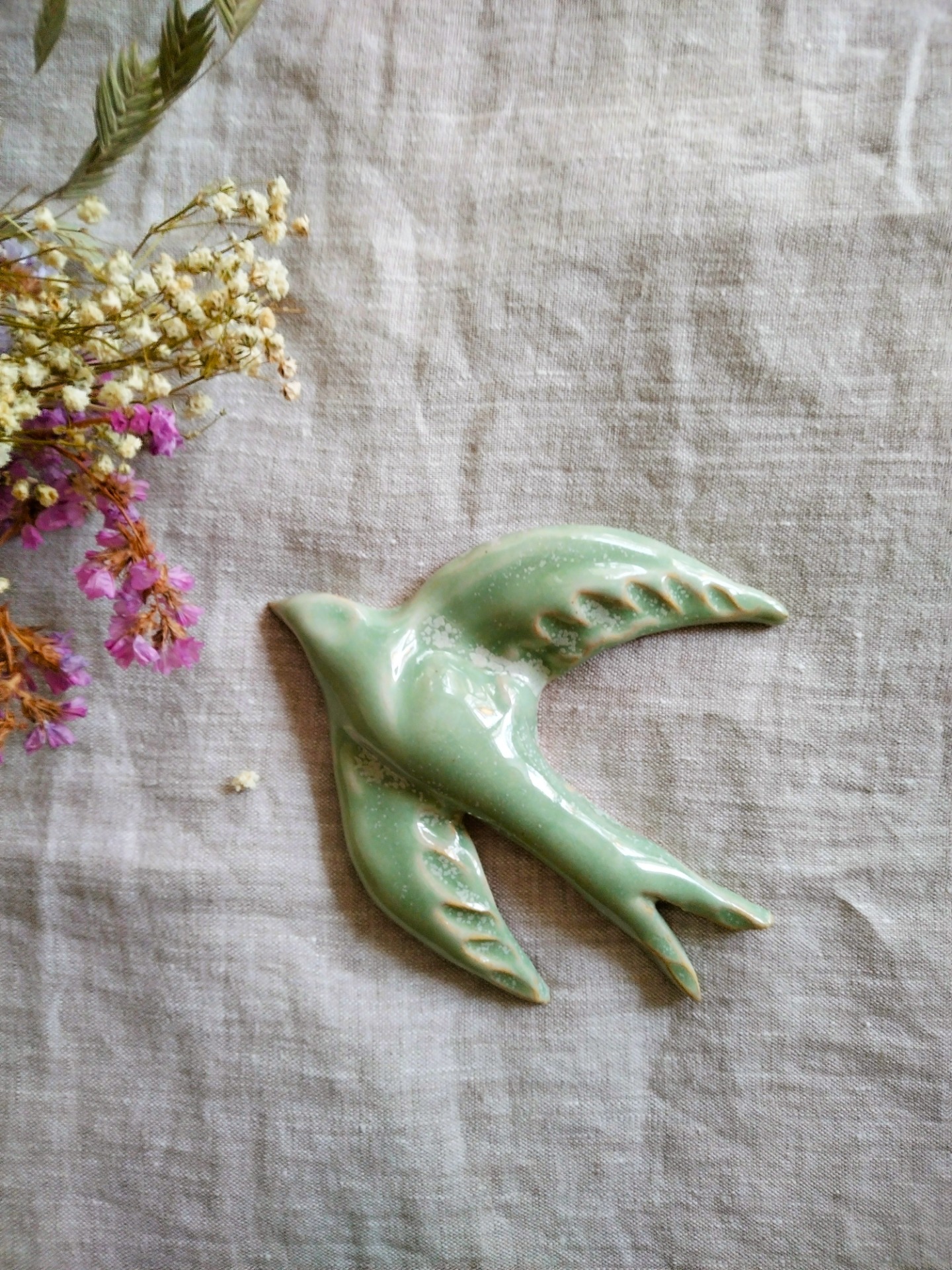 Kaksi kappaletta seinälle ripustettavia pääskysiä. Setti sisältää isomman ja pienemmän pääskysen. Jokainen pääsky on uniikki ja käsintehty.