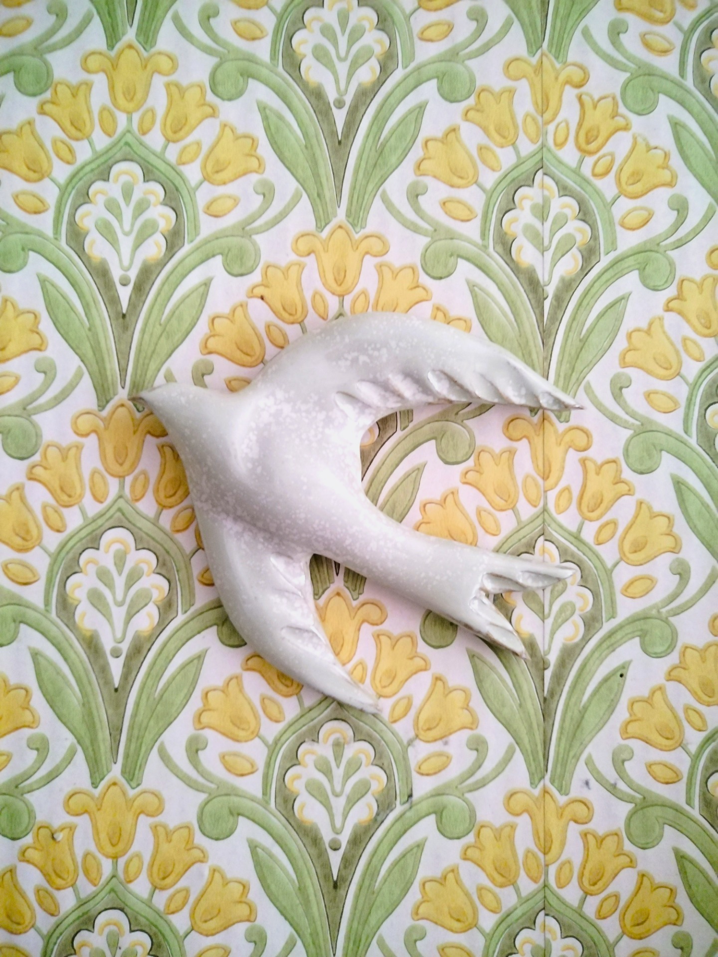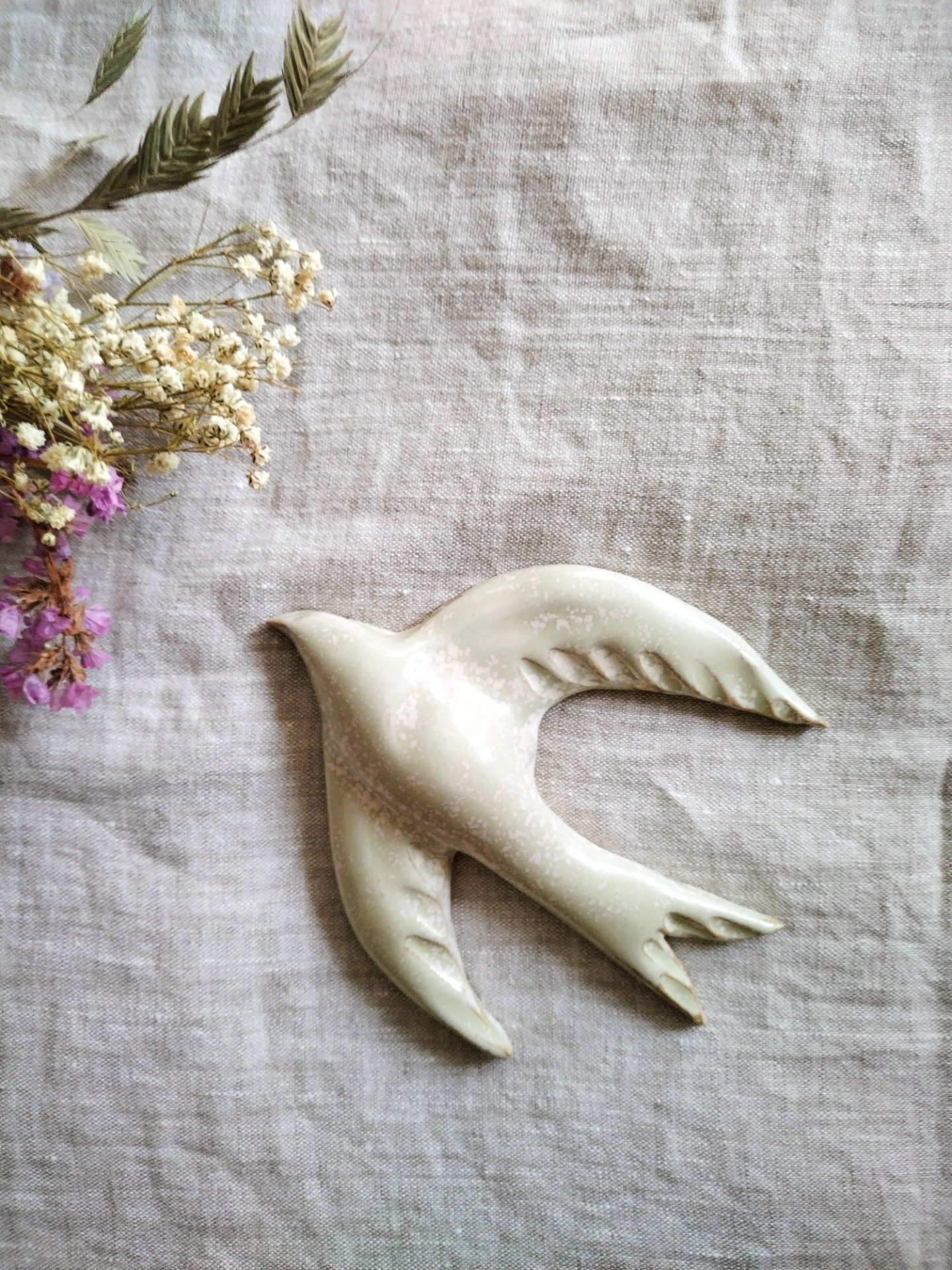 Kaksi kappaletta seinälle ripustettavia pääskysiä. Setti sisältää isomman ja pienemmän pääskysen. Jokainen pääsky on uniikki ja käsintehty.