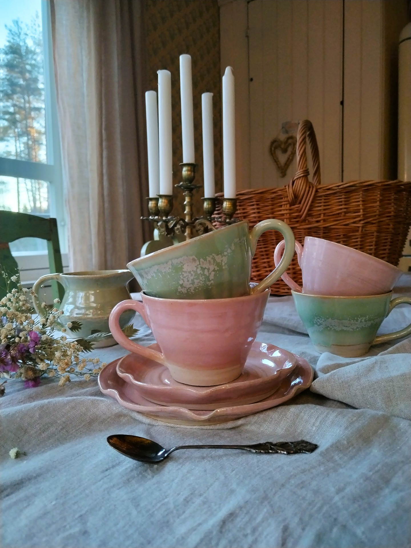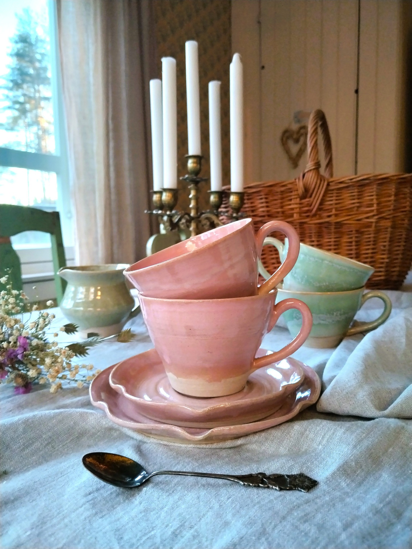 Keraamisten tuotteiden ulkomuoto ja väri vaihtelevat hieman, sillä jokainen tuote tehdään käsityönä Ketunpesän verstaalla. Tiskikoneen -ja mikron kestäviä.